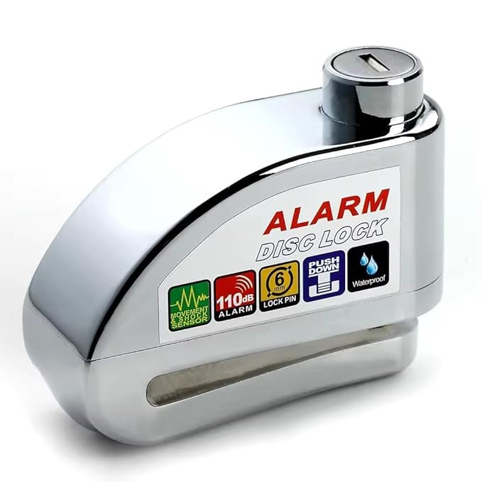 Auto Hub Bike Disc alarm lock for vehicles. Easy to use, push-down locking, With an in-built alarm, Automatic alarm reset, Safety and Convenient, super class B strong anti lock core, Waterproof design, Never afraid of wind and rain, Shake, shock, move or vibrate sensor, Alarm working when touched or tampered with in any way. Resistant corrosion, resistant bad weather, resistant physical destroy. Used For the brake disc of Motorbike, Motorcycle, bike, Electromotive, Scooter, etc. Dimensions: approx. 8.6 x 7 x 3cm, Pin diameter: 6.0mm. Disk Lock Dimensions: 87*60*34mm, Key Cylinder: blade tumbler, Material: Zinc alloy, Alarm loudness: Siren of 110 DB (decibels)